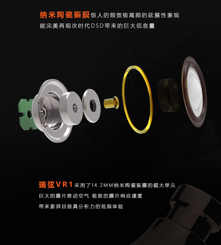 瑞弦陶瓷振膜入耳旗舰VR1日本VGP受赏金奖产品标配CS1线材